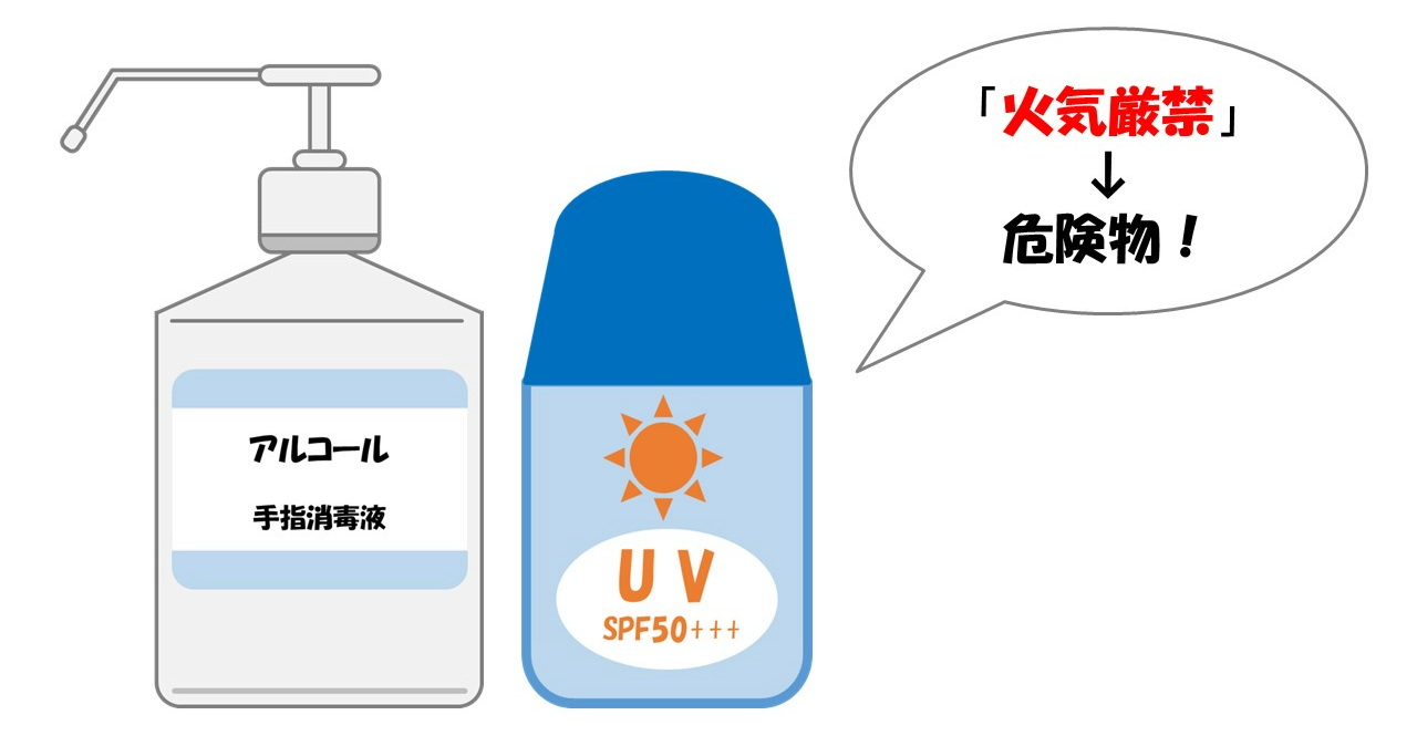 爽快感がある医薬品、化粧品にはエタノールなど危険物が含まれた商品があります。商品パッケージに「火気厳禁」と記載されているものは全て危険物になりますので取り扱い、保管には注意が必要です。