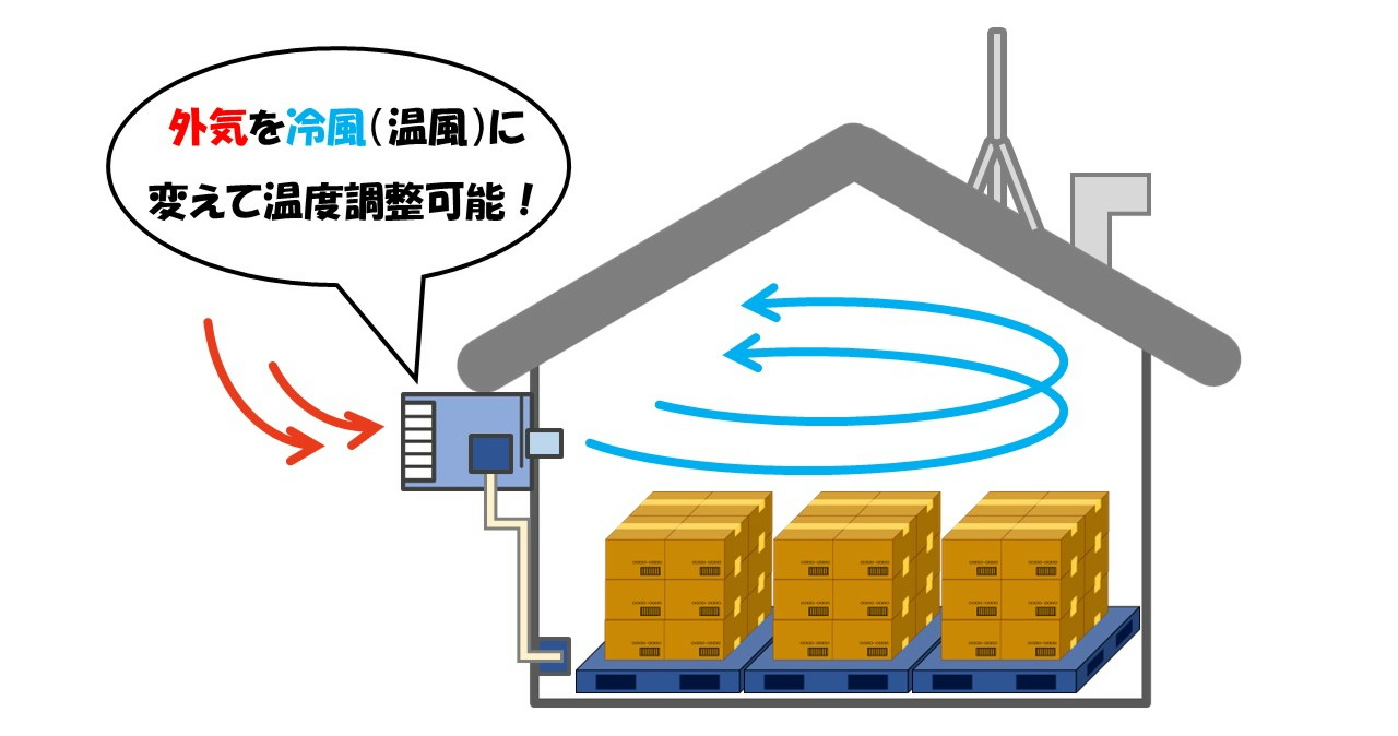 内気循環ですともしもの場合、危険物が漏れて気化した空気を倉庫内に循環させてしまうからです。